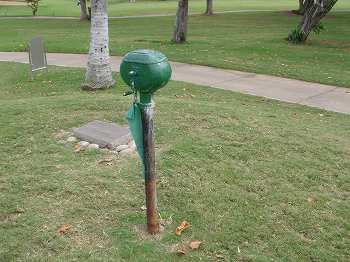 各ホールのティーボックス近くに、金属製のプレートがあります。→