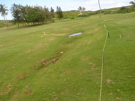 同じ雨が降ったのにもかかわらず、今回プレーしたバックナインの水はけは、それほど悪くなかったです。