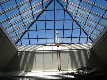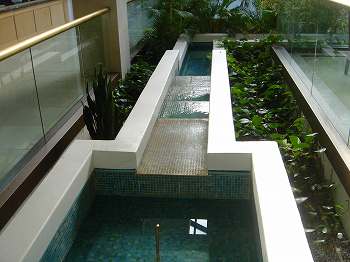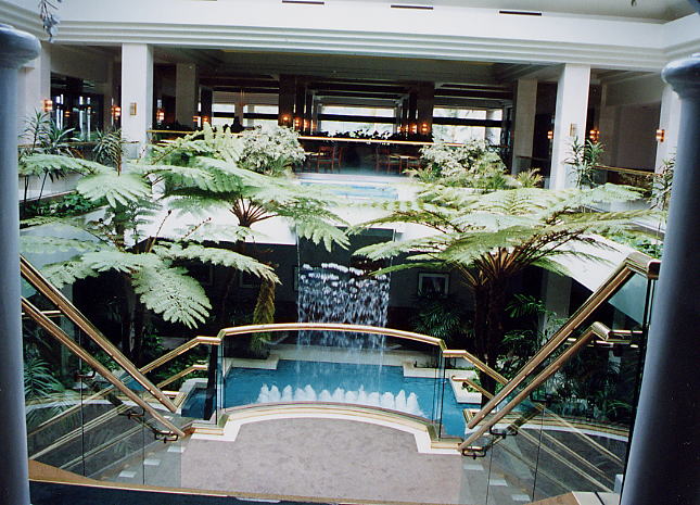 ハウス内に入ると、中心部がアトリウム(吹き抜け)になっていて、その真ん中に、1FからB1へ滝が流れ落ちていて、B1には、噴水になっていました。
