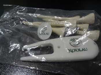 ティーペグとグリーンフォーク、ボールマーカーがセットになった袋を無料でくれました。