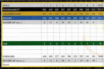 各ホールの距離やトータル距離が変わっていないのに、トーナメントティー、チャンピオンシップティー、フォワードティーからのコースレートとスロープレートが、以前よりやさしい数値になっていたのは、そのためだと思われます。
