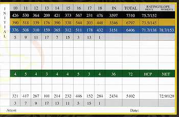 トーナメントティー(フルバック)7310ヤードからの、スロープレート:162 という全米のコースでナンバー1の難易度が物語っています。