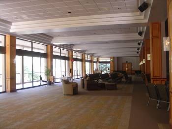エントランスから入口のあるフロア(1F)に入ると、室内はシーンとしていて、ラウンジなどのスペースも近々に使用された様子はまったくナシ!!