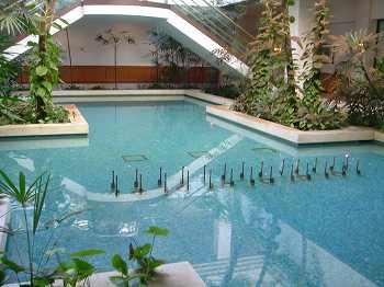 クラブハウス内で豪快に流れていた滝はすっかり止まり、噴水もでていませんでした!!水だけは入っていましたが・・・。