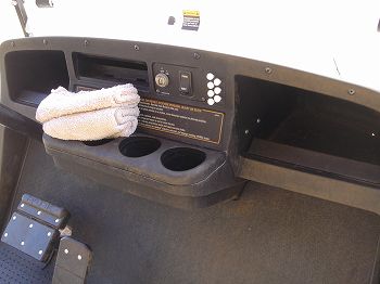 カート前面のプラスティック板は上半分が折りたためるタイプ。
