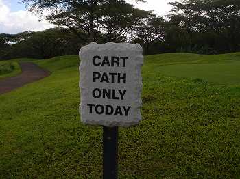 カートは、通常はフェアウェイ乗り入れOKのようですが、このところ、雨が多かったらしく、この日は、カートパスONLYでした!(^^;