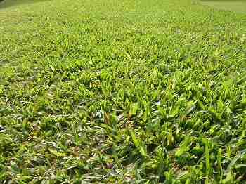 帰国後に調べてみたら、”セントオーガスチングラス”という種類の芝みたいです。