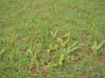 ※2009年に判明しましたが、調査したところ、この太い葉の芝は、「セントオーガスティングラス」でした。