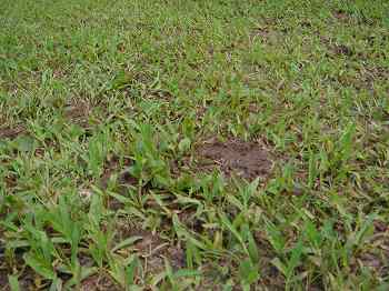 全体的に芝の量が少なく、隙間から泥が露出していました!