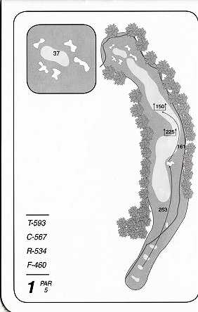 各ホールの幅はそれほど狭くはないので、プレーはしやすい感がありますが、連続した谷越えプレッシャーにどこまで絶えられるか?がポイ ントとなります。ダウンヒルなどの傾斜からの谷越えや、谷越えはティーショットだけではないので、どのあたりに レイアップするか?といった 戦略性も必要。