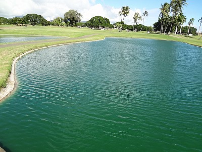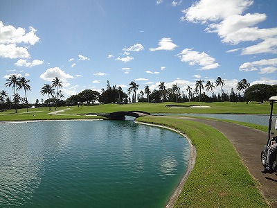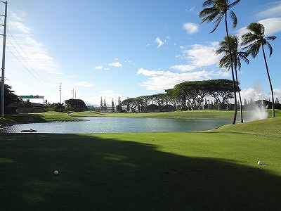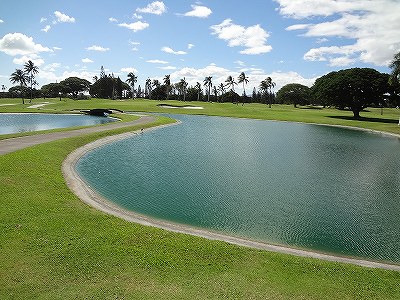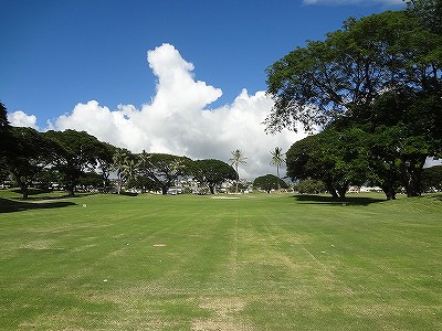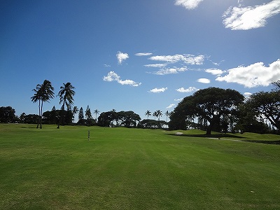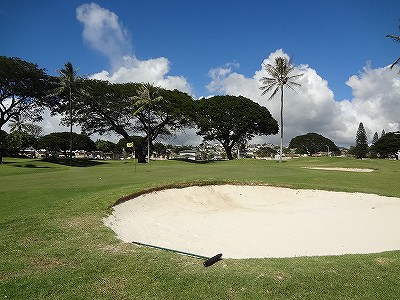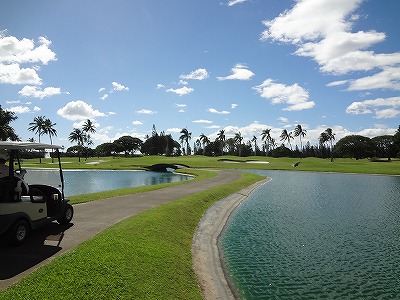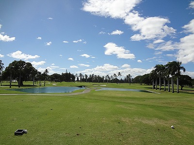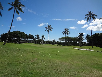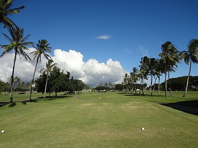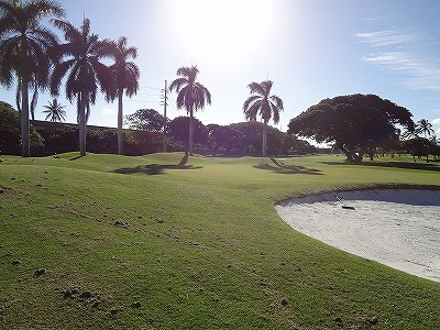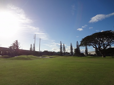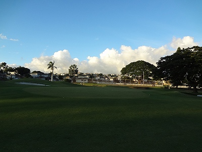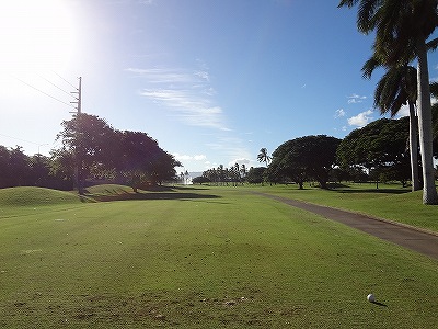 ホノルル空港の近くにあるのですが、空港や航空機は見えず、見えるとしたら、「H1」ハイウェイの高架と、コース周囲の住宅だけ。