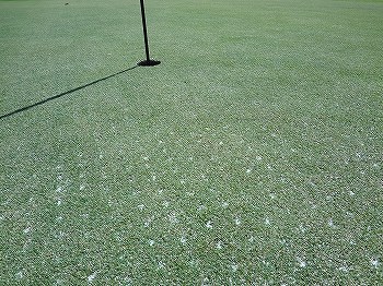 今回、グリーンは、エアレーション跡が少し残っていて、砂が少し残っている状態でした。