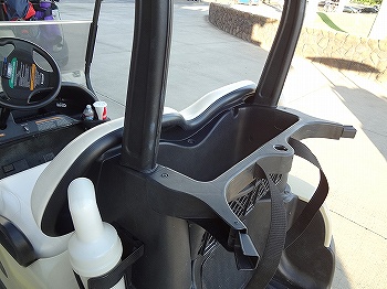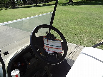 クラブハウス前に、知人の知人が待っていて、準備を速攻でしたあと、カートで14番ホールへ・・・。