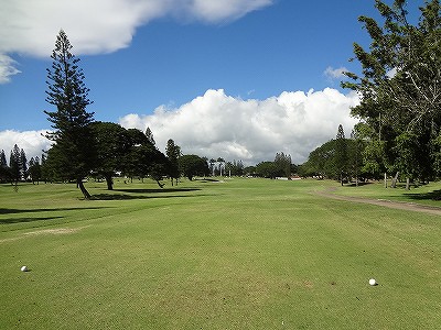 各ホールは、パインツリーやモンキーポッドなど、いろいろな木々でセパレートされていますが、樹木の間隔はまばらで、もしボールが隣のホールへいったとしても、隣のホールからノーペナでそのまま打つことができます。