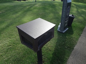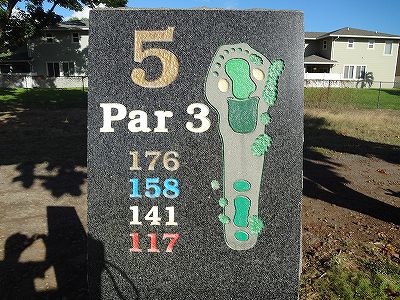 各ホールのティーボックス近くに、石製のプレートがあります。