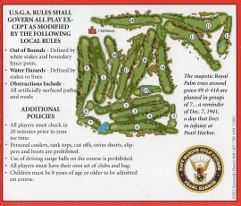 表紙にクラブハウスの写真、内面にコース全体の簡易レイアウト図とローカルルールが記載されています。