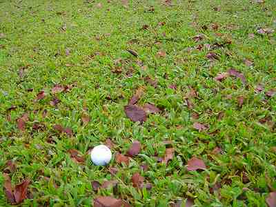 フェアウェイにも、たくさんの枯葉が散乱しています。→