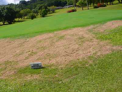 フロントナインは、このような芝と芝の隙間があり、泥が透けてみえるところがけっこうありました。