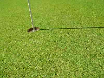 パスパラムグラスのグリーンでボールの転がりはまずまずですが、それほど速くはなく、そこそこといったところ。