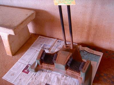 靴みがき機といっても、シューズに付着した泥を落とすブラシがついているだけです。