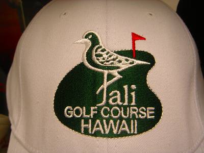 グリーンに鳥が乗っているような絵柄で、その鳥の足が「Pali Golf Course」の「P」になっています。
