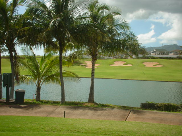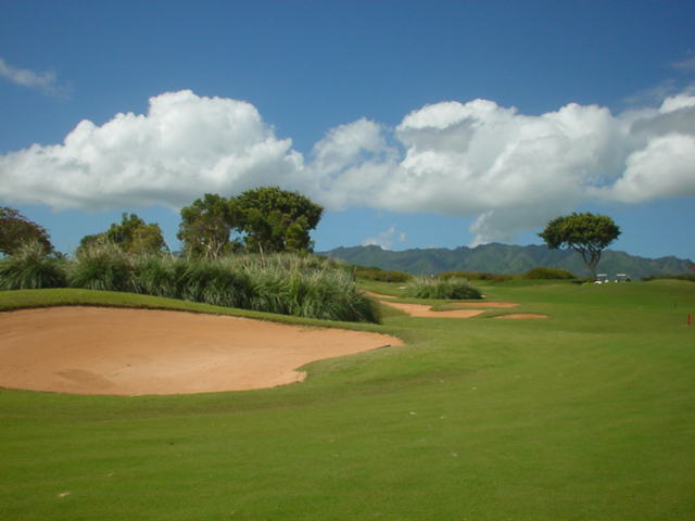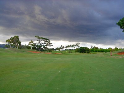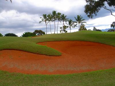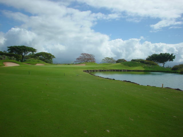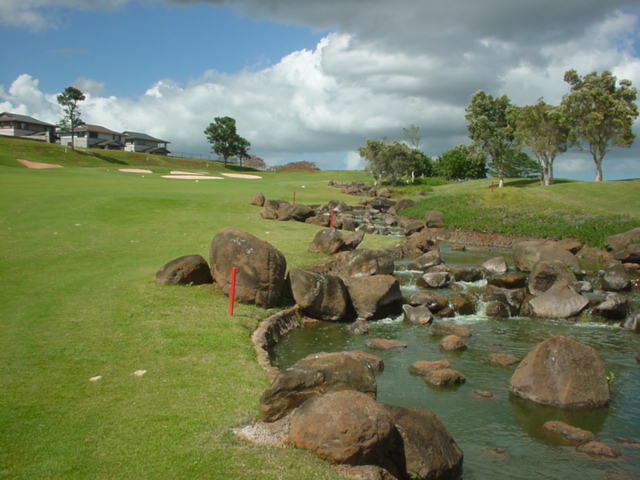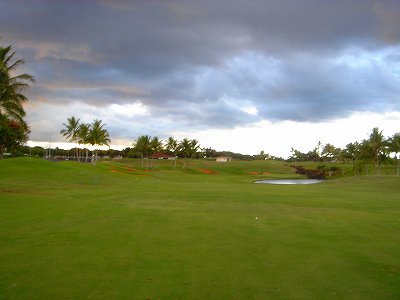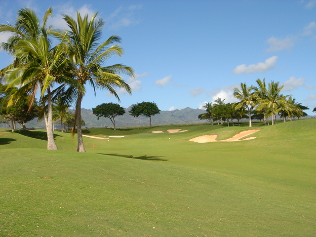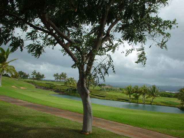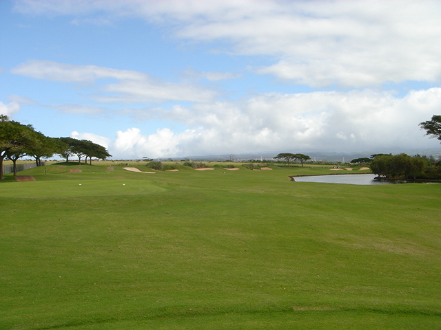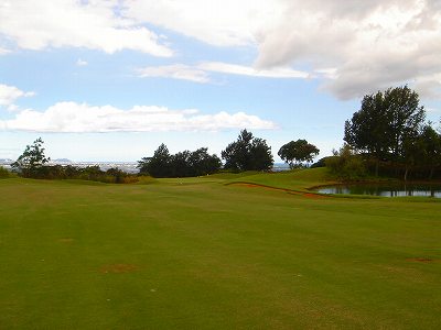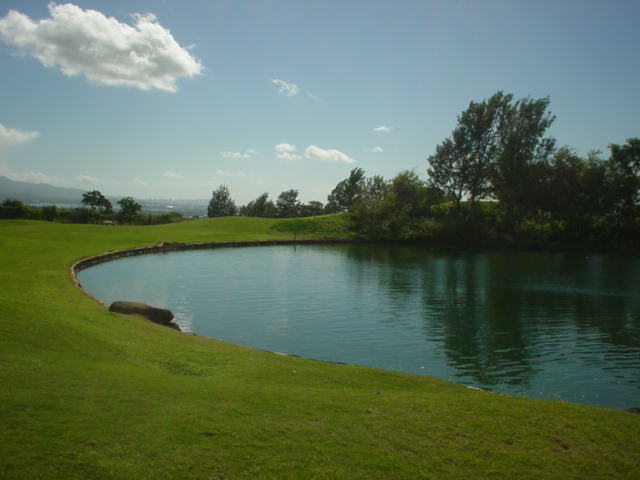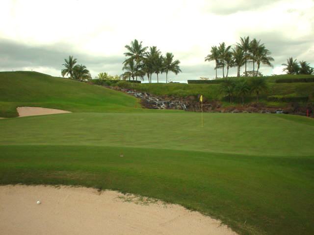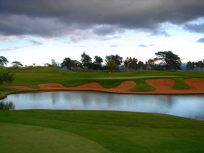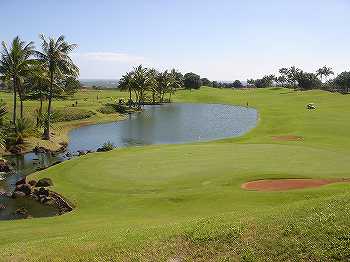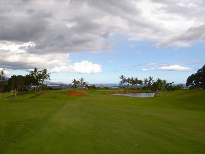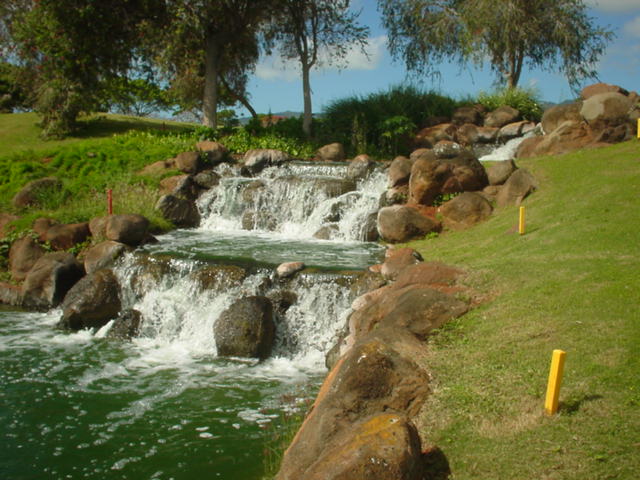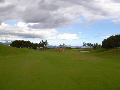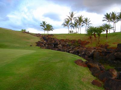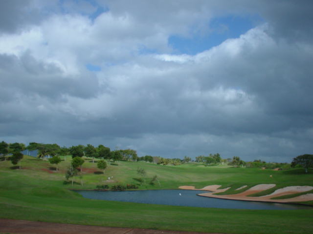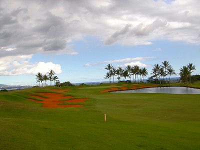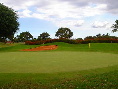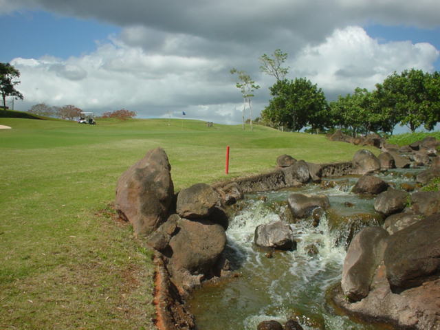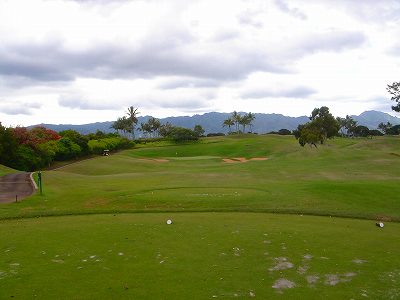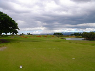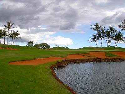 池、クリーク、滝などがけっこうあり、景観もよく、飽きさせないコースレイアウト。まわりの景色で、ハワイらしい南国の雰囲気もあり、非常に良い素材のコースだと思います。ただ、今回は、グリーンの状態が最悪、フェアウェイも今一だったので、非常にもったいない!という印象。