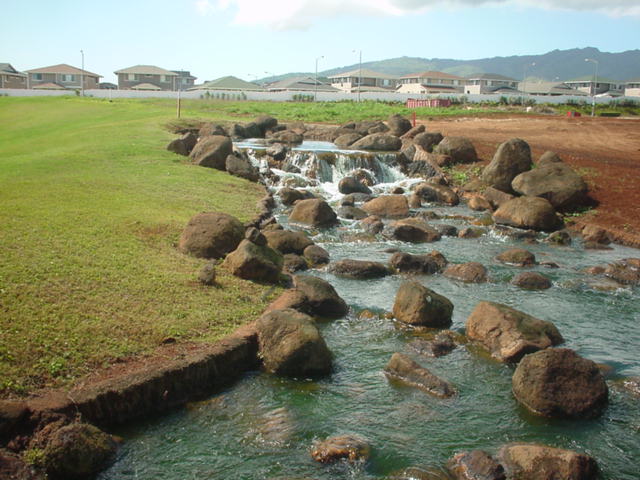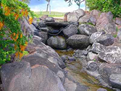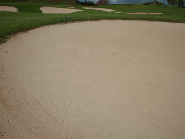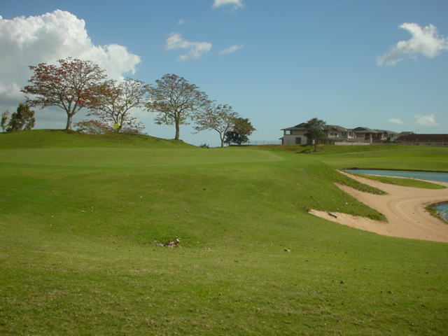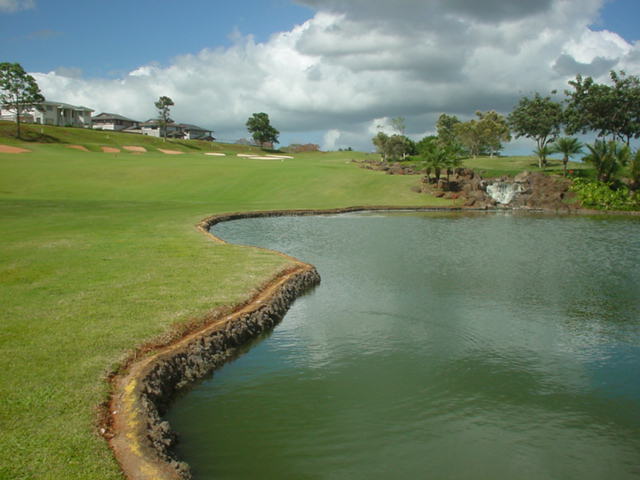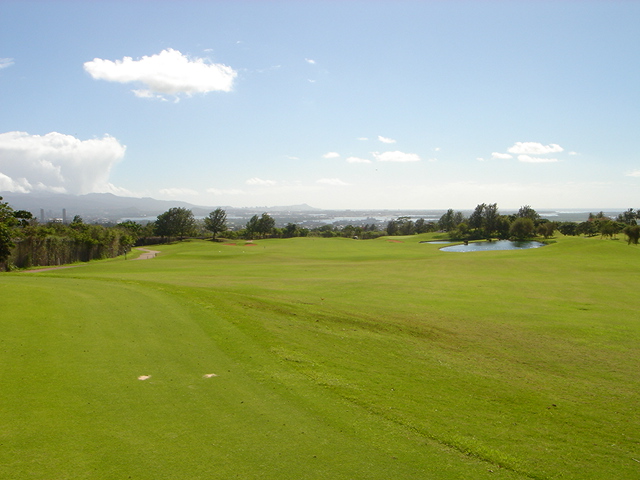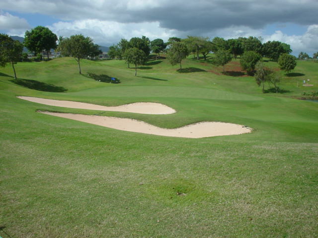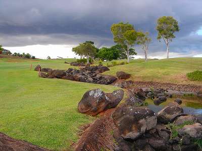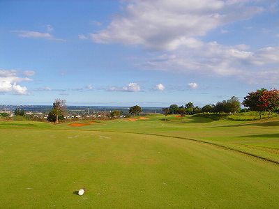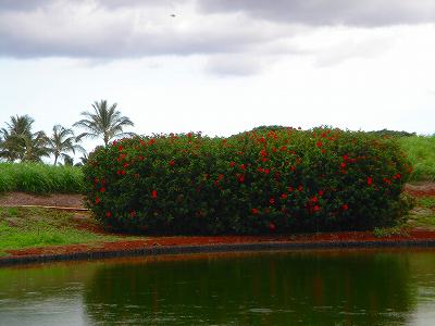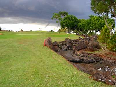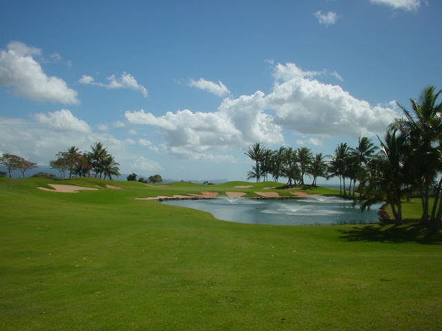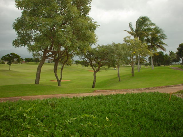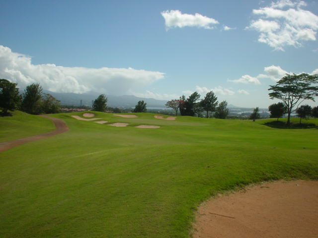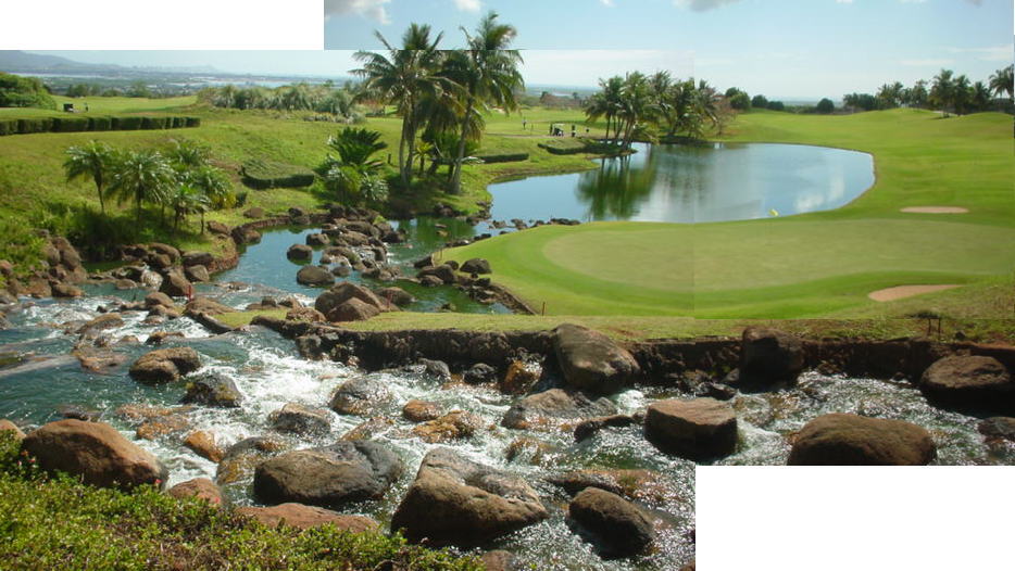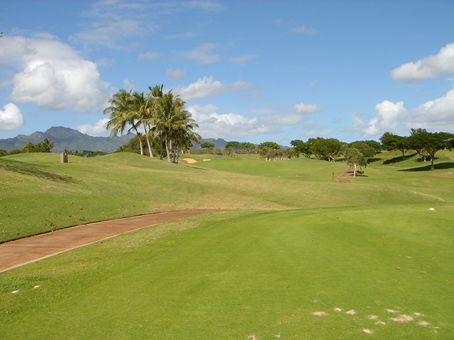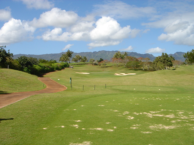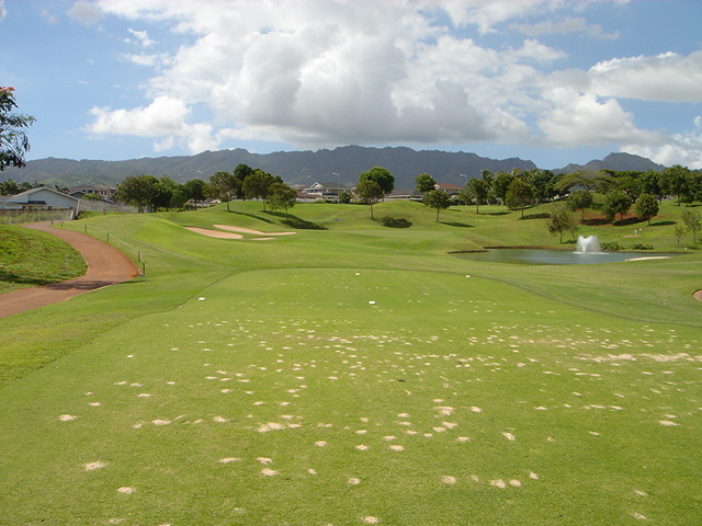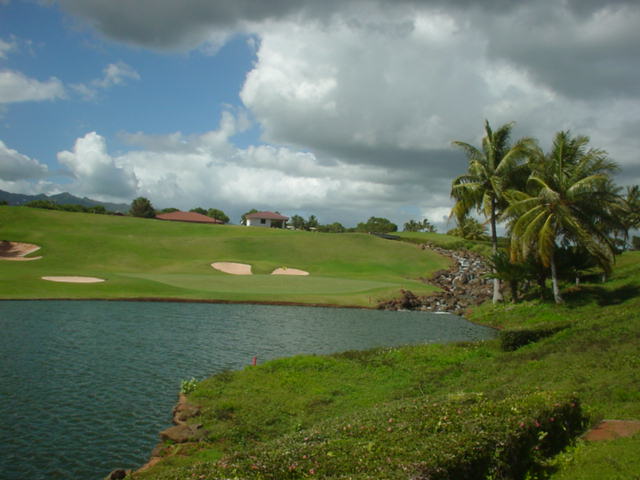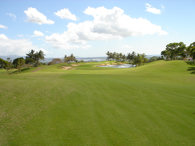 池、クリーク、滝などがけっこうあり、景観もよく、飽きさせないコースレイアウト。まわりの景色で、ハワイらしい南国の雰囲気もあり、非常に良い素材のコースだと思います。ただ、今回は、グリーンの状態が最悪、フェアウェイも今一だったので、非常にもったいない!という印象。