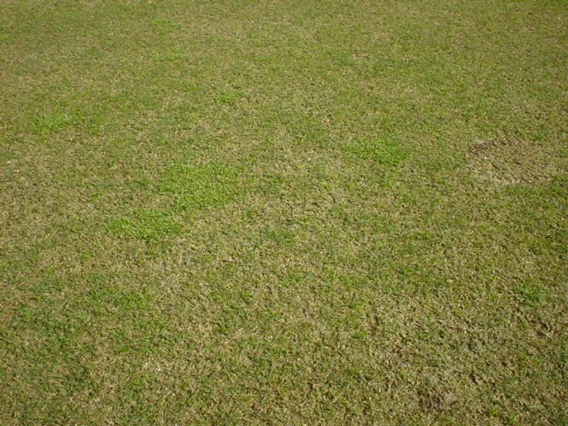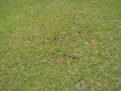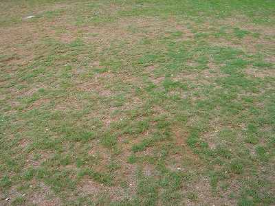 実際には、薄いというか、ハゲているというか、芝がくさってしまっているような感じ。