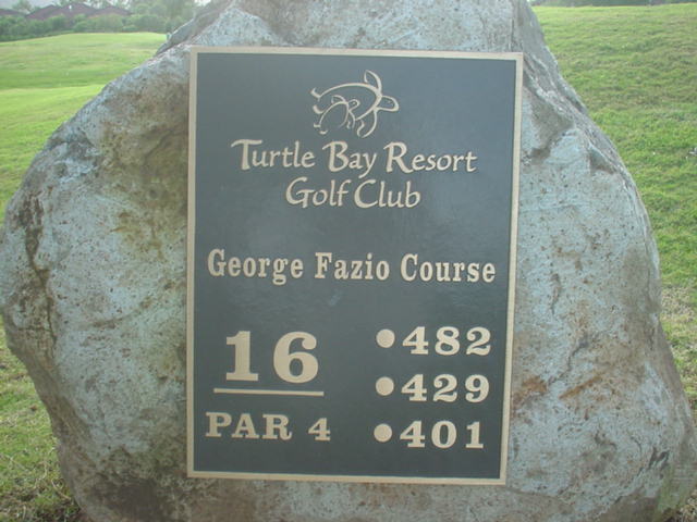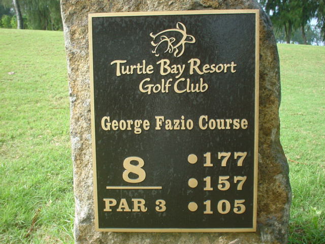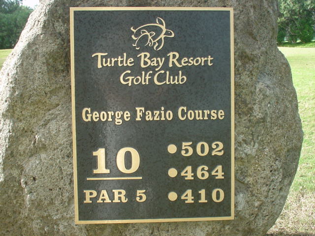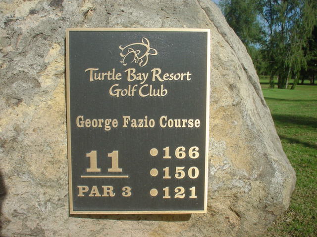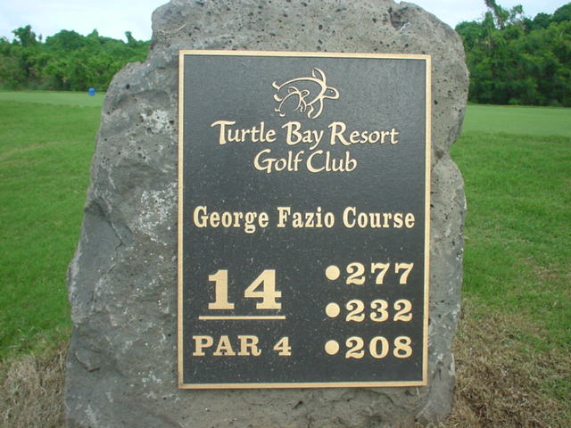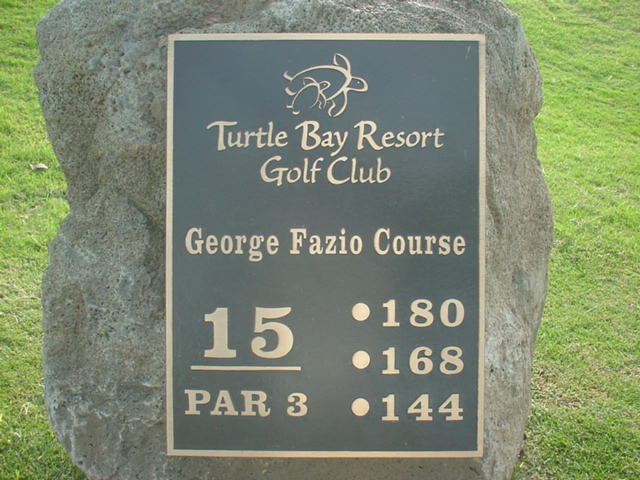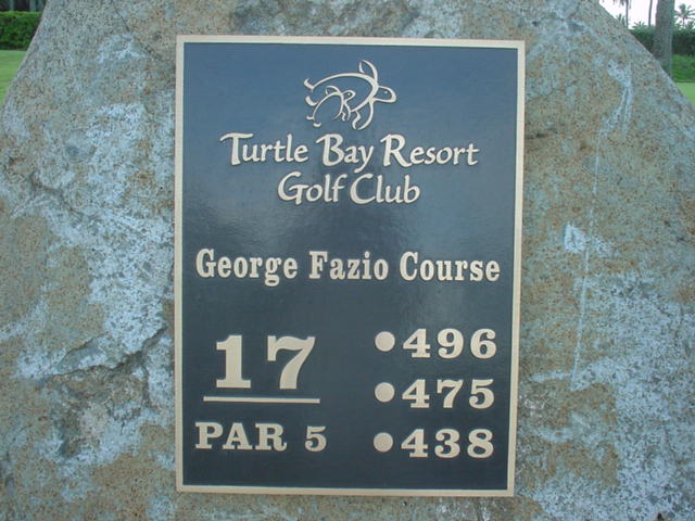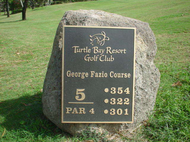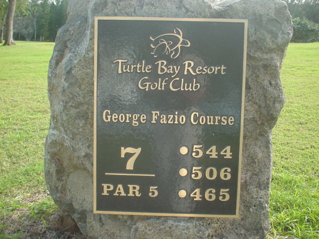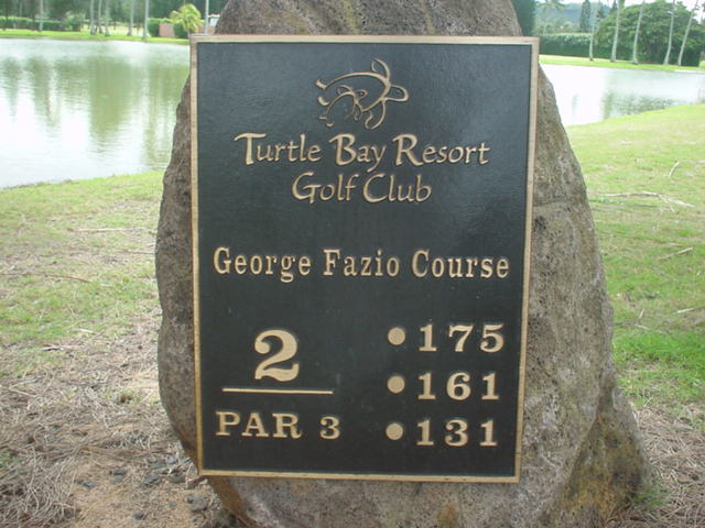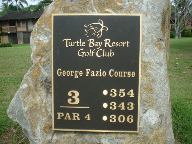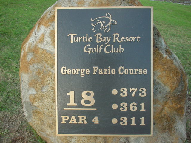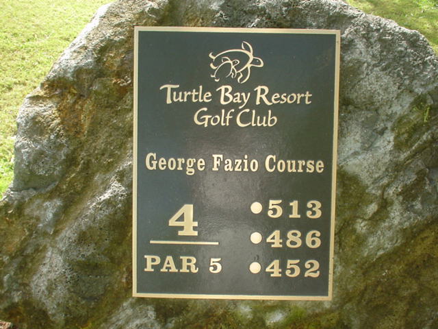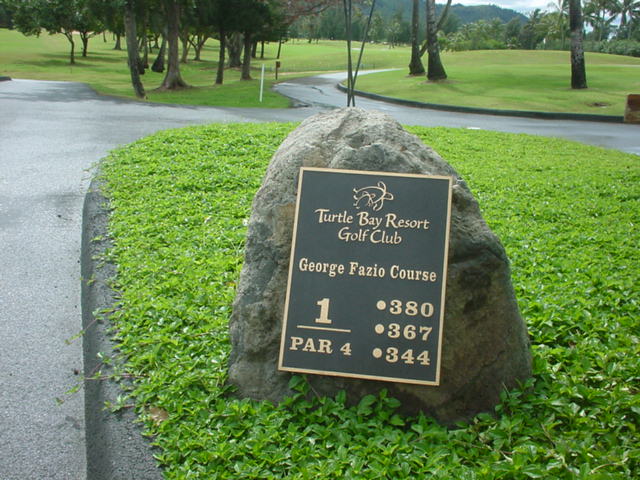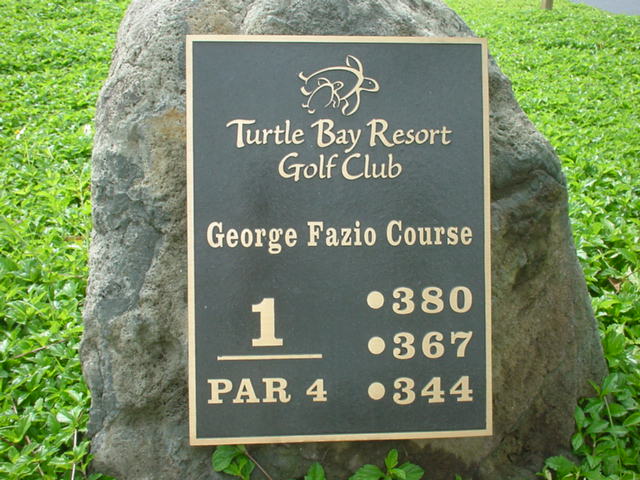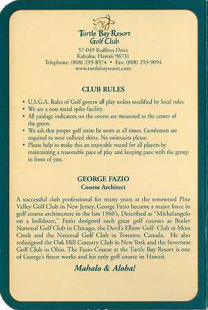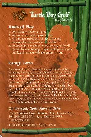 スコアカードには、「タートルベイゴルフクラブ・ジョージ・ファッジオゴルフコース」、ホールプレートには、「タートルベイリゾートゴルフクラブ・ジョージ・ファッジオコース」、オフィシャルWEBサイトでは、「タートルベイリゾート・ファッジオコース」と記載してありますが、ハワイゴルフマニュアルでは、「タートルベイリゾート・ジョージ・ファッジオゴルフコース」と記載しています。