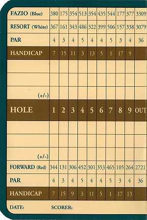 2004年時点では、各ティーマークの名称が、FAZIO、RESORT、FORWARDでしたが、それぞれ、Blue、Whiite、Red