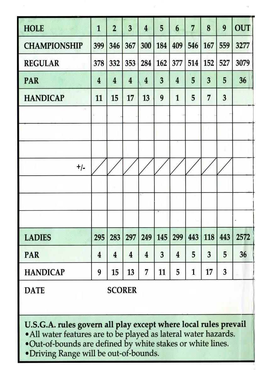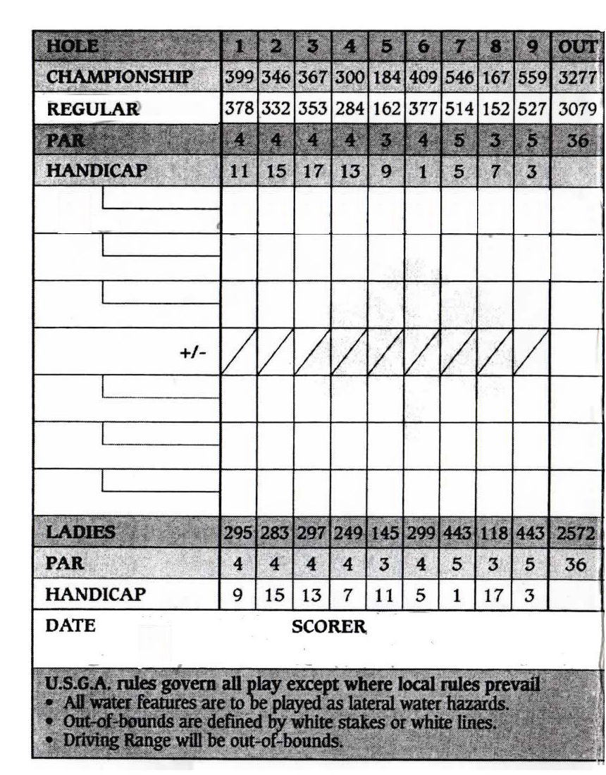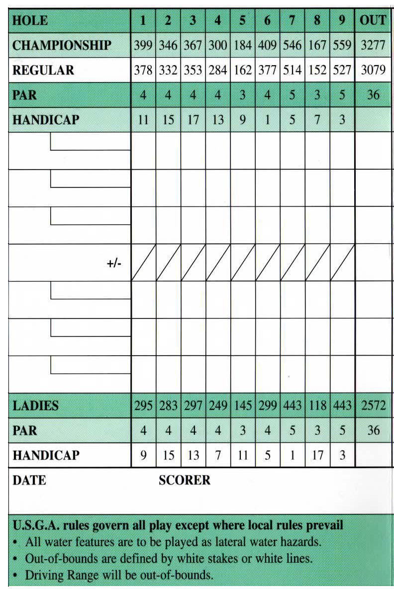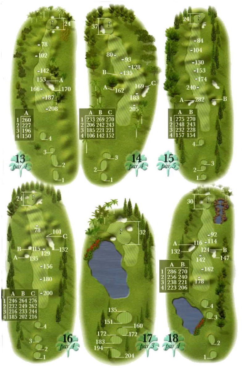 距離は、レディース:5226ヤード、レギュラー:6261ヤード、チャンピオンシップ:6663ヤード。