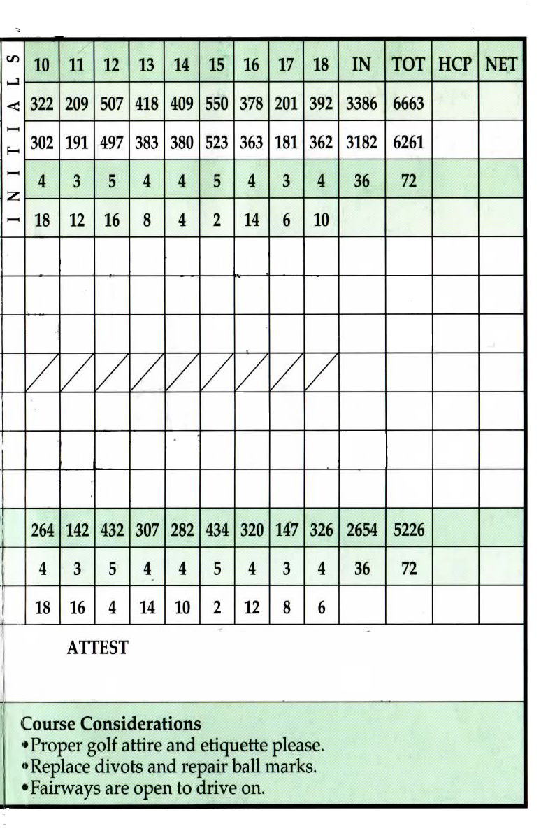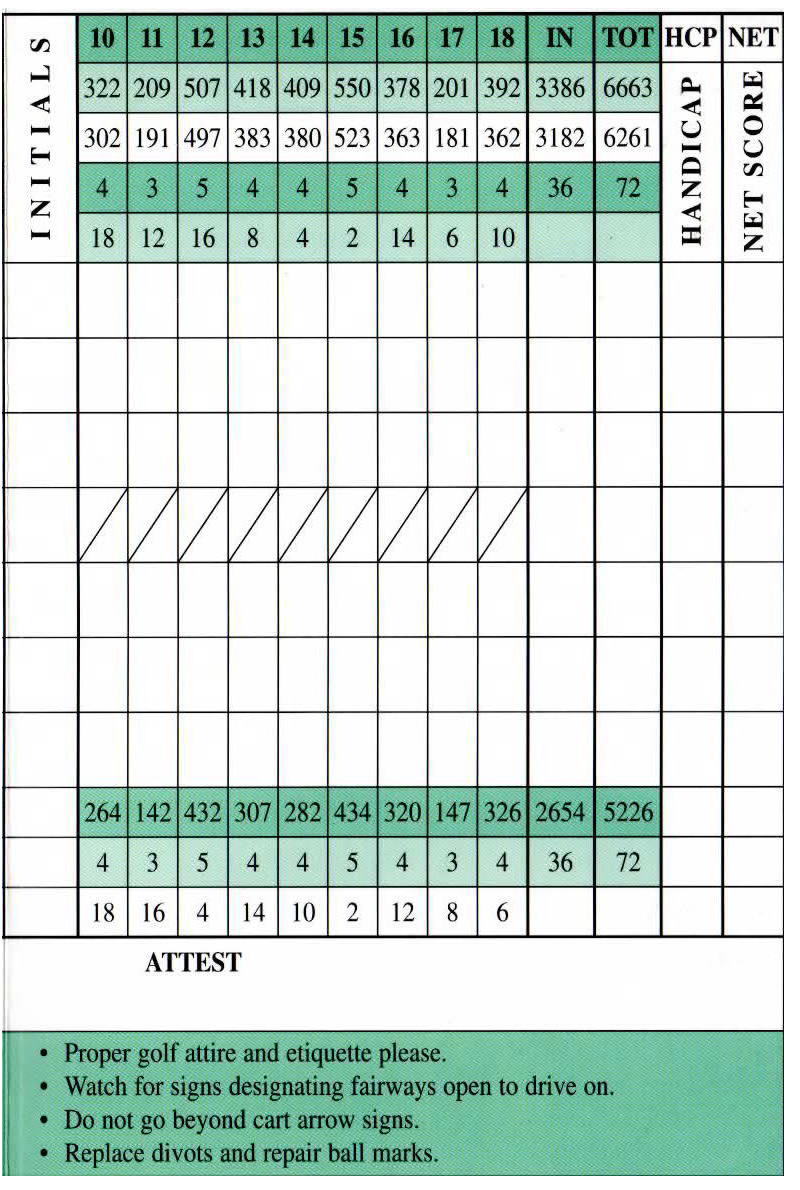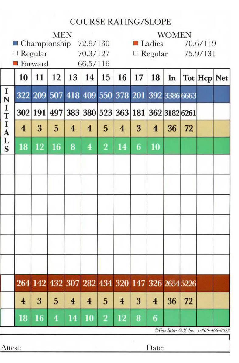 距離は、レディース:5226ヤード、レギュラー:6261ヤード、チャンピオンシップ:6663ヤード。