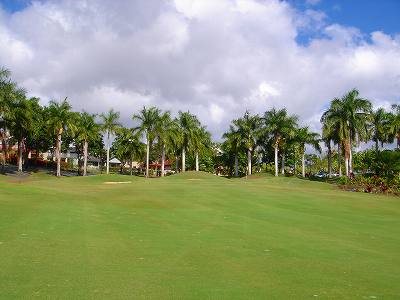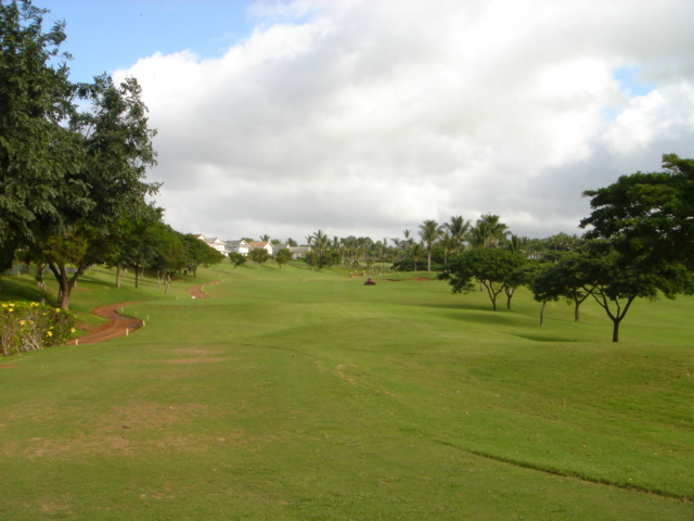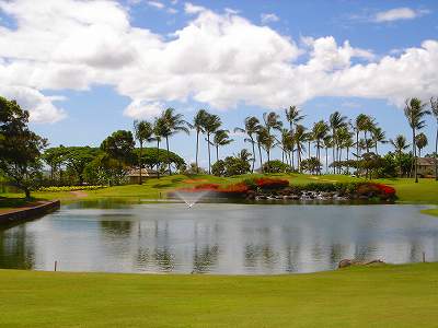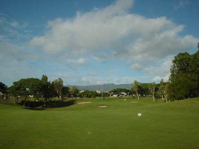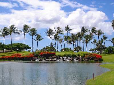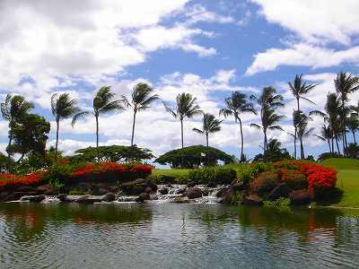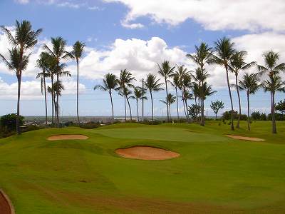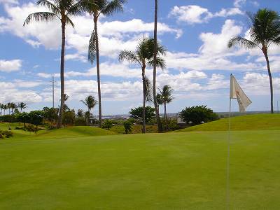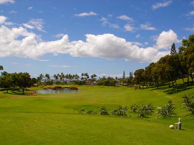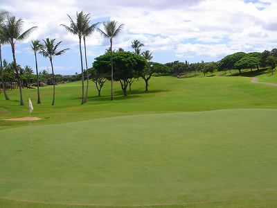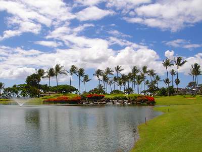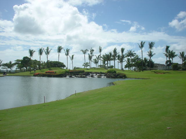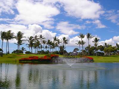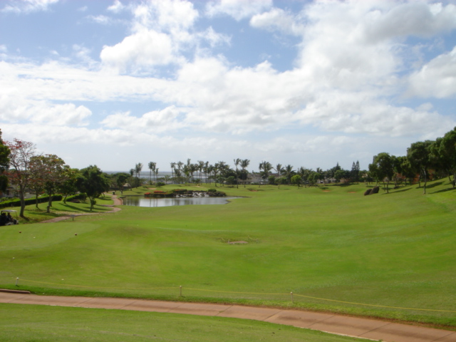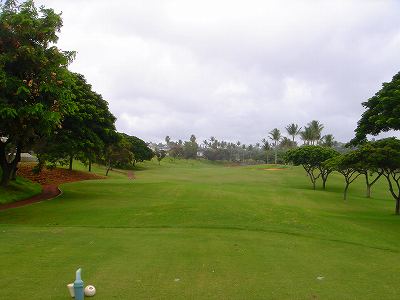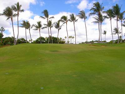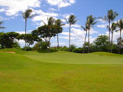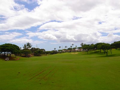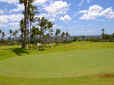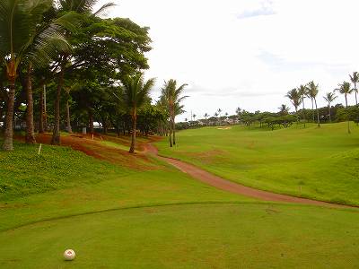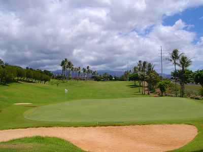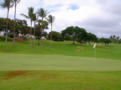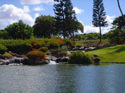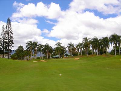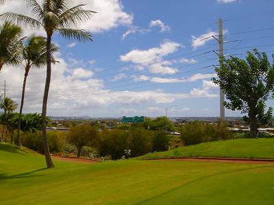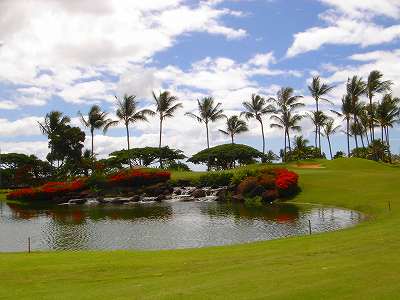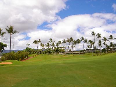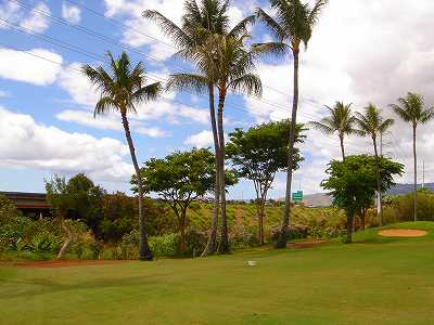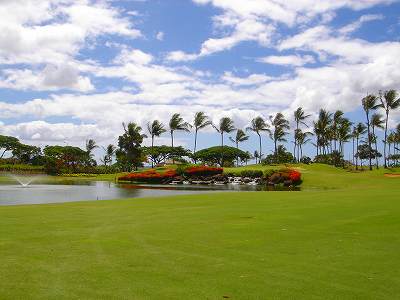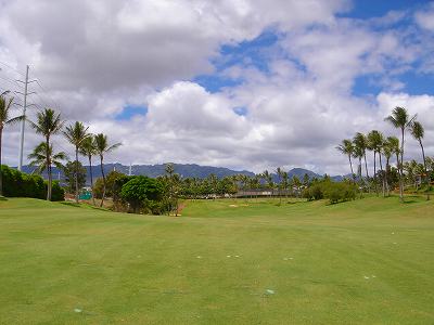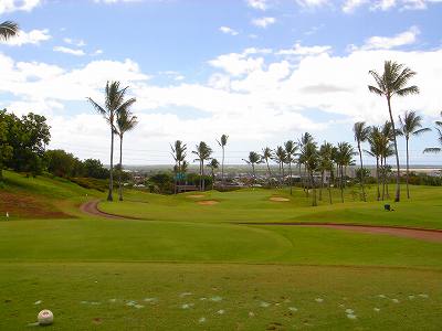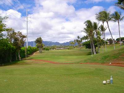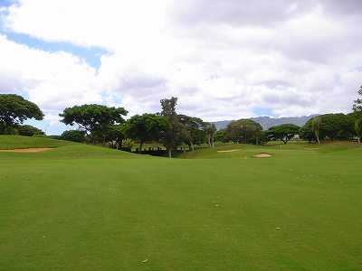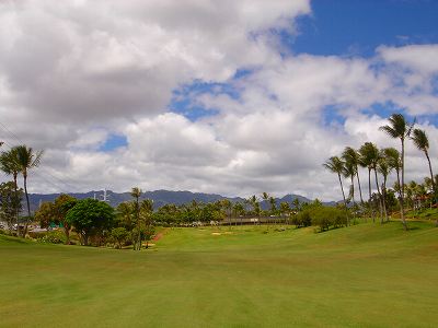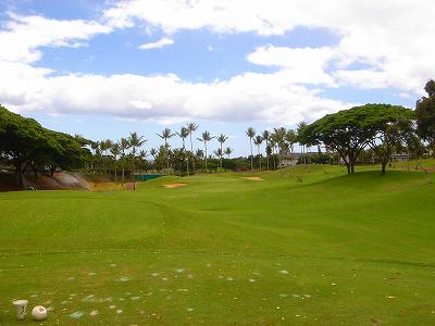 海ははるか彼方にパールハーバーが見えるくらいですが、コース内にはココナッツツリーがけっこうあり、色彩豊かな花々や、小滝が流れこんでいる池など、とてもきれいで、ハワイのリゾート感のある雰囲気は充分に味わえ、コースコンディションが、以前より良くなったので、オアフ島の中での、おすすめコースの1つになったといえます。