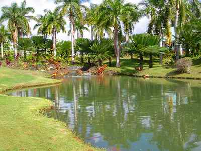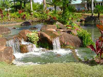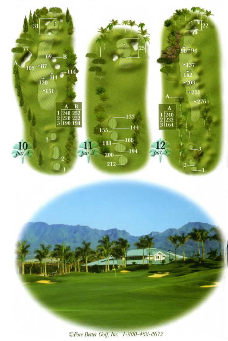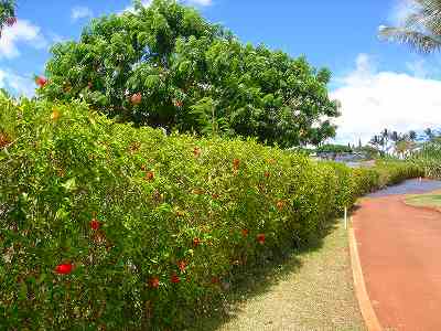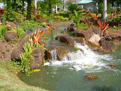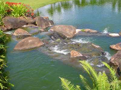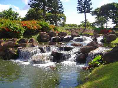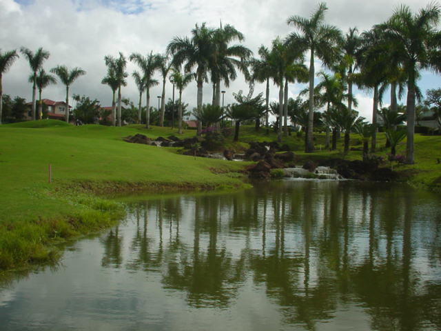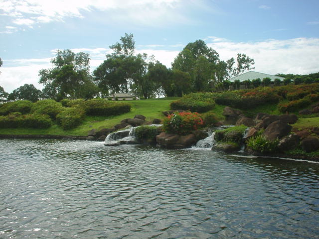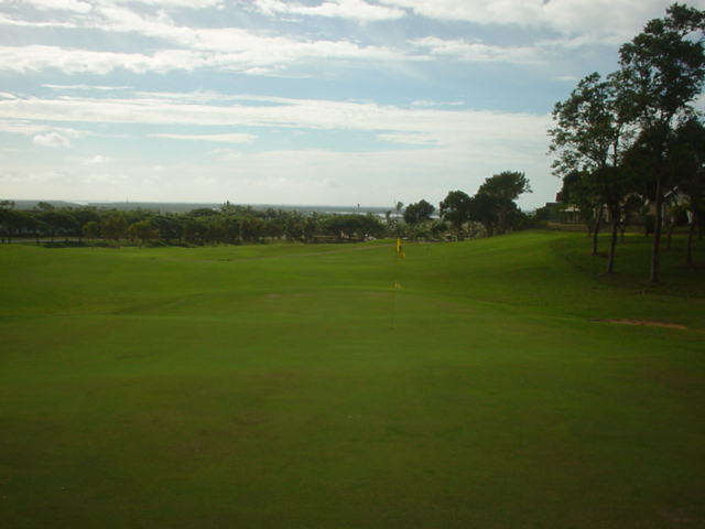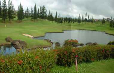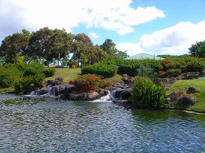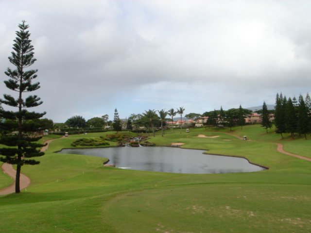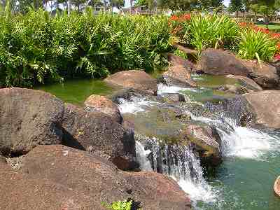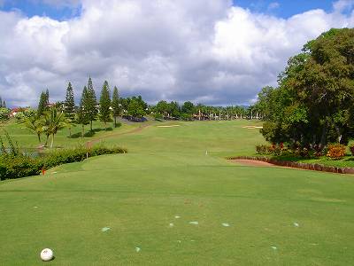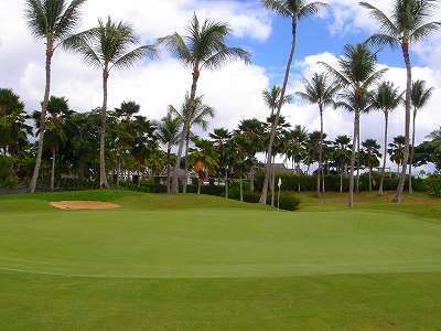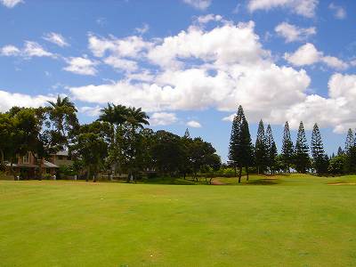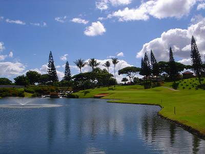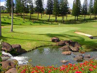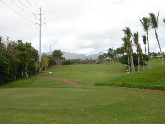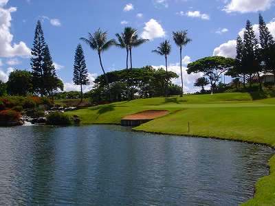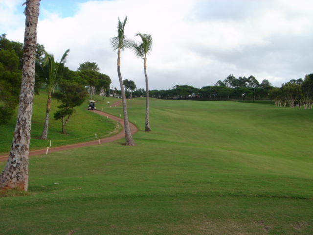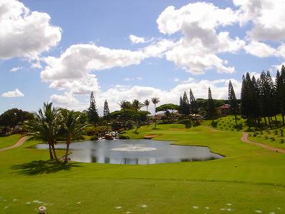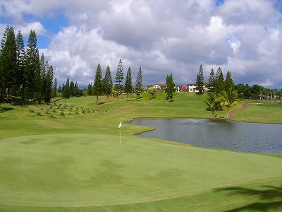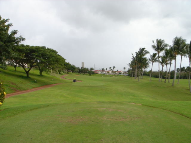 海ははるか彼方にパールハーバーが見えるくらいですが、コース内にはココナッツツリーがけっこうあり、色彩豊かな花々や、小滝が流れこんでいる池など、とてもきれいで、ハワイのリゾート感のある雰囲気は充分に味わえ、コースコンディションが、以前より良くなったので、オアフ島の中での、おすすめコースの1つになったといえます。