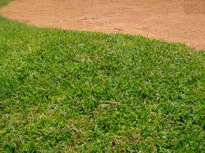 目土すらしてなくて、ボコボコ。芝は薄くて地盤も硬く、最悪。