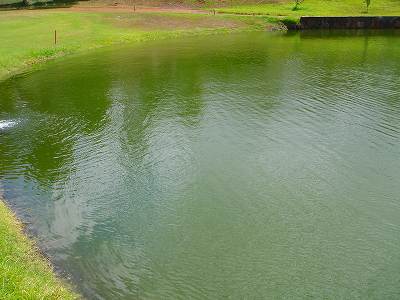 18番ホールのグリーン右横から、少し手前にかけて、クリークというか、ちょっとした小滝があるのですが、遠めにみると、あまりよく見えない上、ショットにはあまり影響がないので、ちょっと残念。
