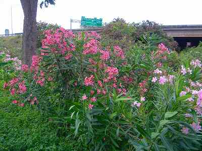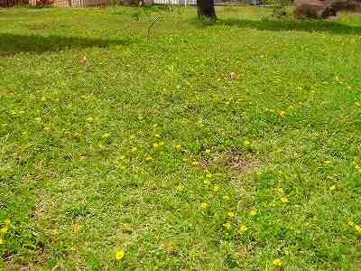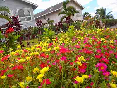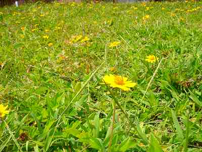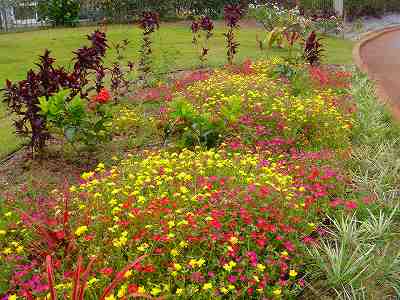 花の彩りが、芝の緑色とのコントラストで、なんともきれいです。
