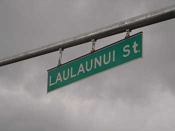 少し走行し、「LAULAUNUI St.」の標識のある信号を左折します。