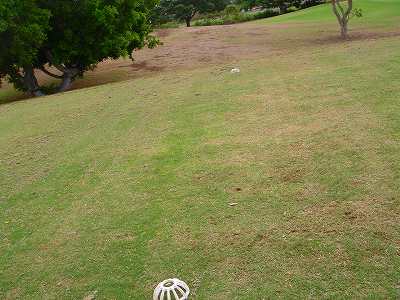 フェアウェイは、芝の密集度が少なく、泥が露出してたりするところもあり、地盤が硬いです。