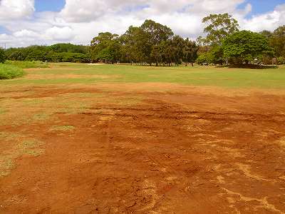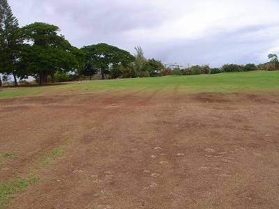 まあ、実際には、コオリナやカポレイなどのちゃんとしたコースなどは、ロコにとってのプレー料金が高い(ローカルコースよりも)こともあって、マナーの悪いロコがプレーしていることも少ないですし、このコースのようなローカルコースでなければ、それほど隣同士のホールが隣接していないこともあって、このようなことはあまりないと思います。