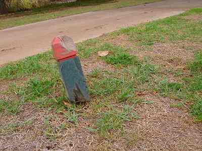 フェアウェイの片側に、100、150、200ヤードの杭あり。