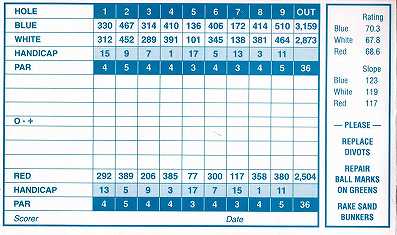 ■ティーマーク、距離、コースレート、スロープレート スコアカードやホールプレートには、ティーマークが3ヶ所記載されていますが、実際に設定されていたティーマークは、ホワイトとレッドの2ヶ所。